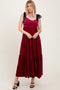Beige Linen Stripe Puff Sleeve Midi Dress