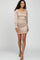 Beige Metallic Smocked Ruffle Accent Fitted Dress