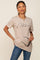 A short sleeve basic crewneck tee with a graphic detail in front.