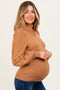 Beige Ribbed Bubble Sleeve Maternity Knit Top