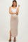 Beige Ribbed Knit Side Slit Maternity Midi Dress