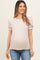 Details A ribbed maternity top featuring short puff sleeves with a ruffle trim and a rounded neckline. Content + Care