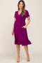 Beige Ribbed Ruched Front Long Sleeve Midi Dress
