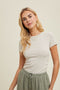 Beige Ribbed Scallop Trim Split V-Neck Short Sleeve Maternity Top
