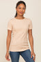 A solid ribbed maternity top featuring short sleeves and a rounded neckline.