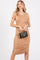 Beige Ruched Fitted Dress