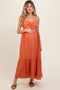 Beige Smocked Cut-Out Back Tiered Maternity Midi Dress