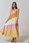 A midi dress featuring a square neckline, a smocked bodice, adjustable cami straps, a back cutout with an adjustable tie and a tiered skirt.