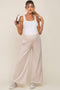 A pair of ultra-soft knit fleece pants featuring double elastic waistbands and side pockets.