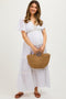 Beige Square Neck Ribbed Sleeveless Maternity Midi Dress