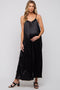 A striped knit maternity sweater featuring a rounded neckline and long sleeves.