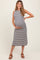 Beige Striped Sleeveless Side Slit Maternity Midi Dress