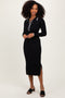 Black Abstract Print Knit Sleeveless Maternity Midi Dress