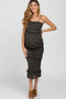 An animal printed top featuring a mock neckline, ruffle tiers, long sleeves and a back keyhole cutout with a button closure.