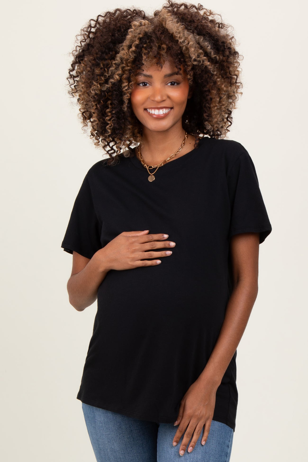 Experience everyday comfort with our Black Basic Maternity Tee, designed to keep up with your changing shape. Made from soft, breathable fabric, this tee offers a gentle stretch that adapts to your growing bump while providing a relaxed fit. Its classic black color and simple design make it a versatile staple for your maternity wardrobe, perfect for layering or wearing alone. Short sleeves and a crew neckline ensure all-day comfort, whether you’re running errands or relaxing at home. Easy to care for and style, this tee is a must-have for expecting moms seeking both comfort and timeless style.
