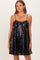 Shine bright at any event with our Black Bow Front Sleeveless Sequin Mini Dress. Featuring delicate spaghetti straps and a playful bow detail at the front, this dress combines elegance with a touch of flirty charm. The all-over black sequins add a dazzling sparkle that catches every eye, perfect for parties, nights out, or special occasions. The mini length and flowy silhouette ensure comfort and movement, while the lightweight fabric keeps you cool and confident. Pair it with your favorite heels and bold accessories to complete the ultimate party-ready look. Step into the spotlight effortlessly!