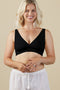 A solid maternity/nursing bra. Wire free. Wrap front design. Adjustable straps.