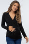 Black Brushed Knit Wrap Front Top