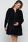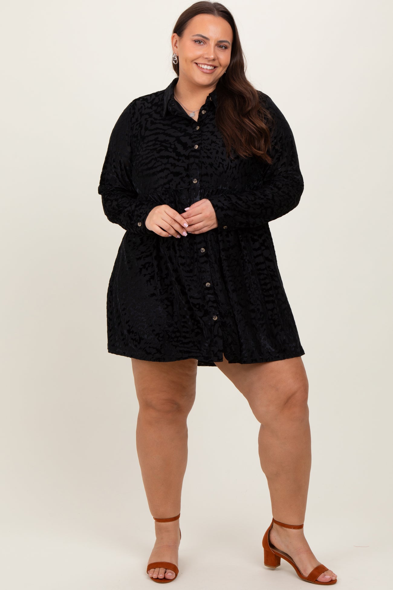 Black Burnout Velvet Maternity Plus Button Up Dress