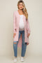 A solid chunky knit maternity open front cardigan with a cable knit accent. Pocketed.