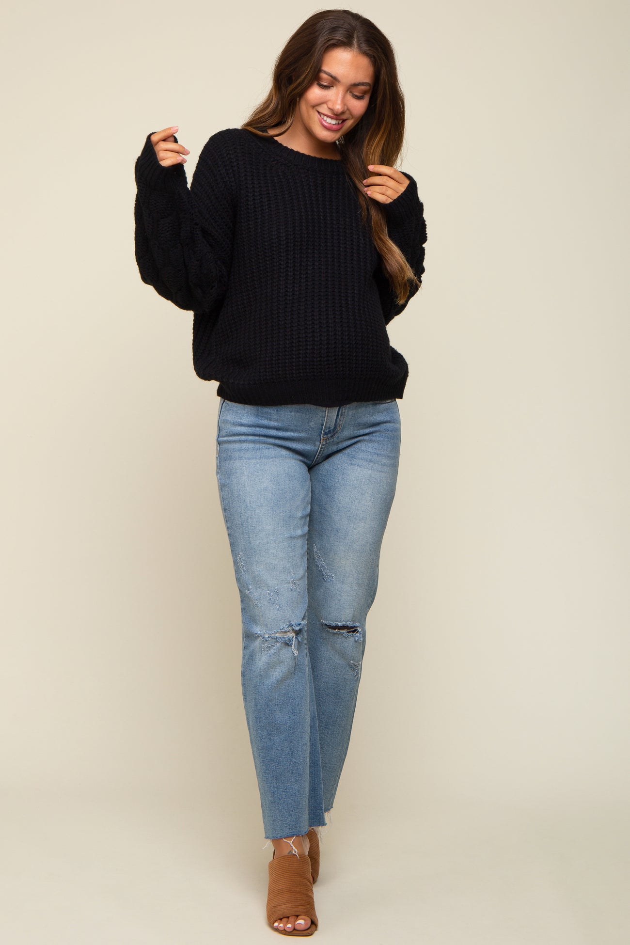 Black Cable Knit Sleeve Maternity Sweater