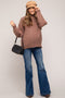 Details A solid thick knit maternity sweater dress with a mock neckline, contrast knit on chest and bubble sleeves. Content + Care