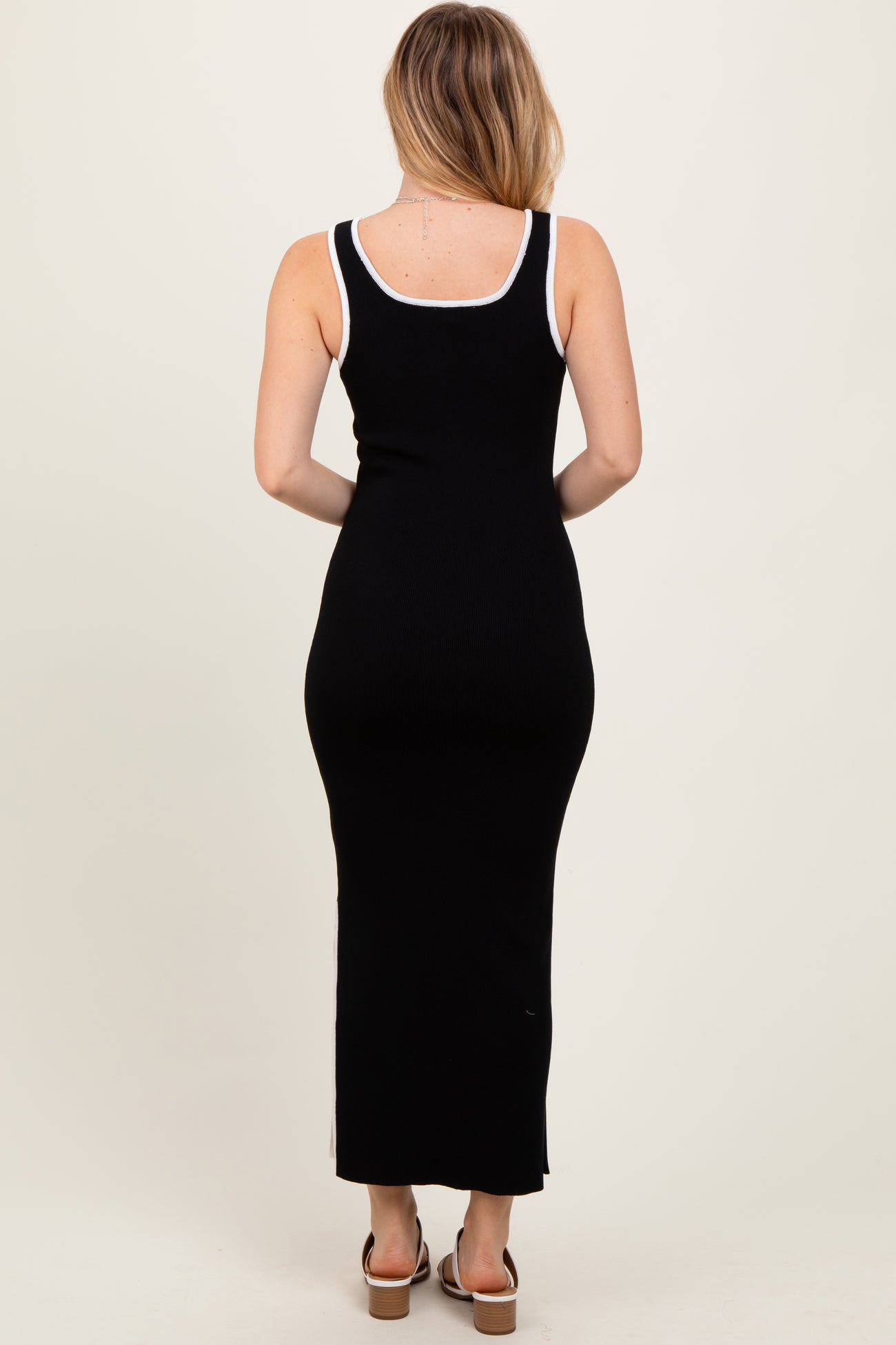 Black Colorblock Trim Knit Side Slit Midi Dress