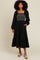 Black Contrast Smocked Balloon Sleeve Midi Dress