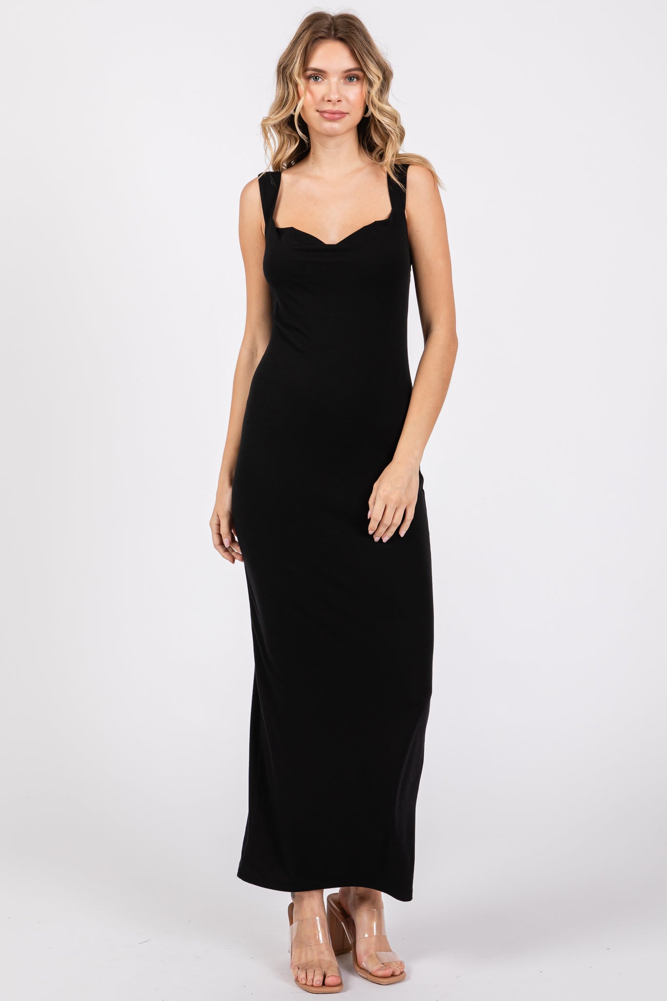 Black Cowl Neck Sleeveless Midi Dress