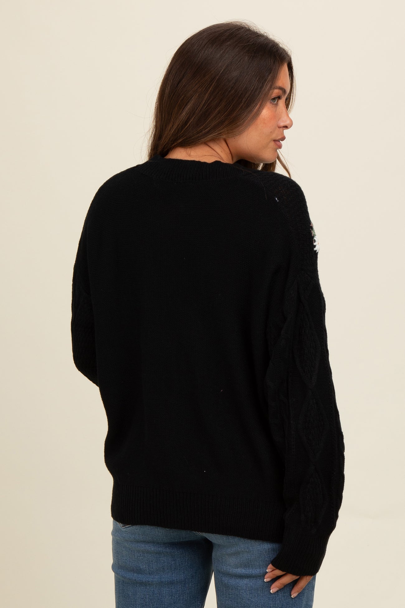 Black Embroidered Flower Cable Knit Maternity Sweater