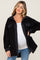A lightweight fleece maternity coat featuring a button down front, 4 front pockets, long sleeves, elbow patches, a curved hem and a collared neckline.