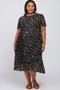A chiffon plus size midi dress featuring a rounded neckline, short ruffle sleeves, a pleated skirt, a keyhole back with a button closure and double lined for added coverage.