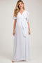 A floral maternity midi dress featuring ruffle accents, a tiered skirt, side pockets, short sleeves and a v-neckline. Double lined.
