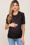 Black Floral Side Ruched Short Sleeve Top