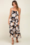 A floral maternity maxi that features a scoop neckline, side pockets, and a gathered bottom tier.