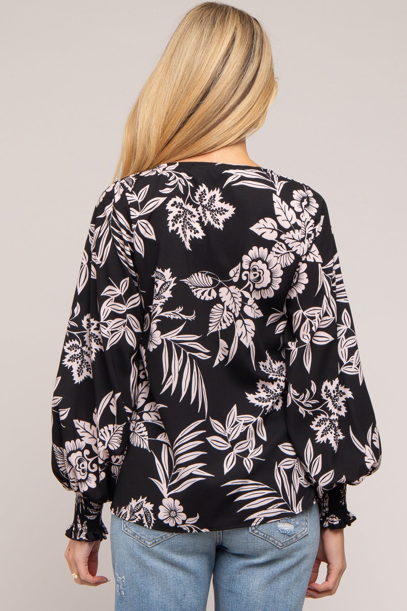 Black Floral V-Neck Long Sleeve Maternity Blouse