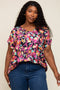 Black Floral V-Neck Short Sleeve Maternity Plus Top