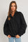 A solid sweatshirt with a half zipper, a mock neckline, long drop shoulder sleeves, and side pockets.