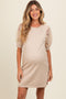 Black Knit Beaded Floral Mesh Sleeve Maternity Mini Dress