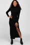 A heather knit dress featuring a ribbed texture, long sleeves and a rounded neckline.