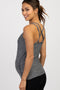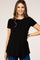 A solid hued short sleeve maternity nursing top featuring a wrap front accent and a rounded neckline.