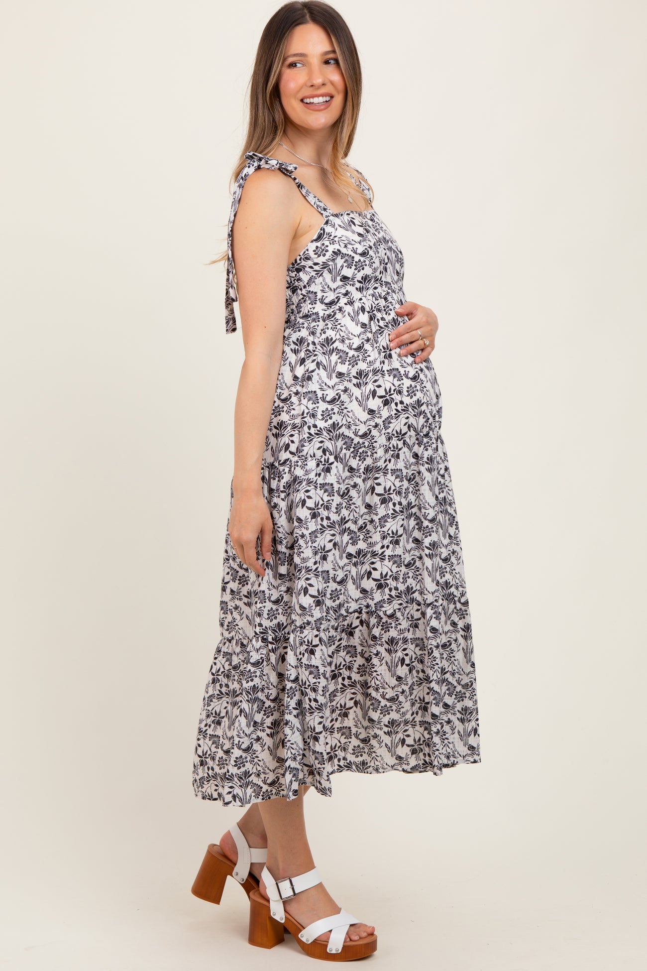 Black Multi Floral Tie Strap Maternity Maxi Dress