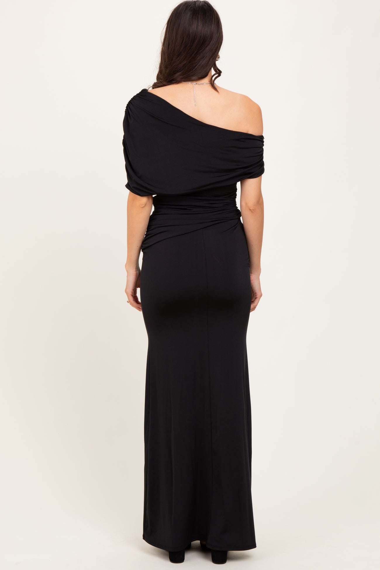 Black Off Shoulder Foldover Ruched Maxi Dress