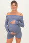 Black Off Shoulder Long Sleeve Maternity Maxi Dress