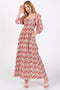 A palm print maternity dress with a v-neckline, front knot twist and side slit.