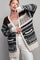 A pattern fuzzy knit cardigan featuring two front pockets, long sleeves and ribbed trim.
