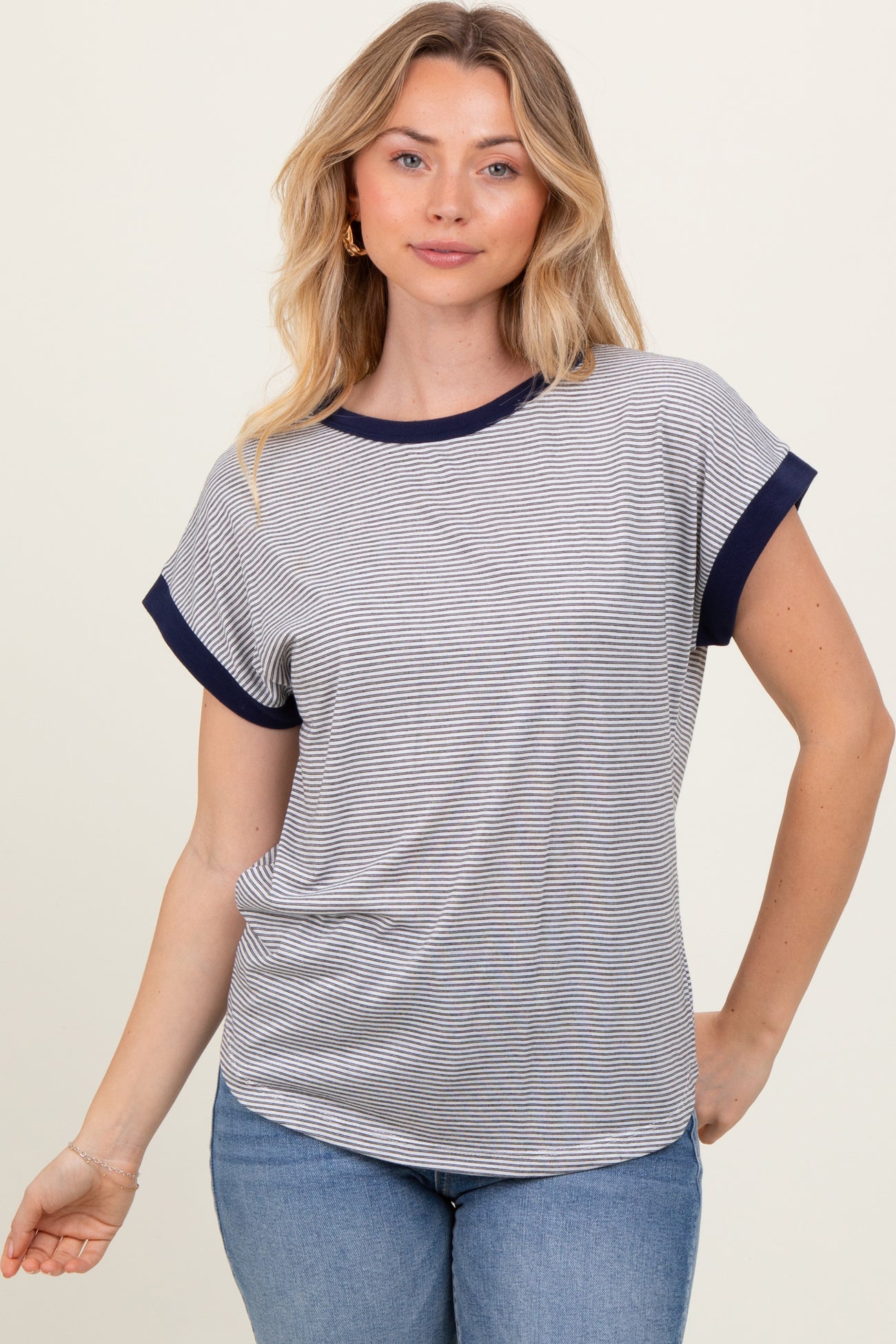 Black Pinstripe Contrast Trim Short Sleeve Tee