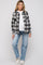 A plaid maternity flannel featuring a button down front, long sleeves, front pockets, a curved hem and a collared neckline.