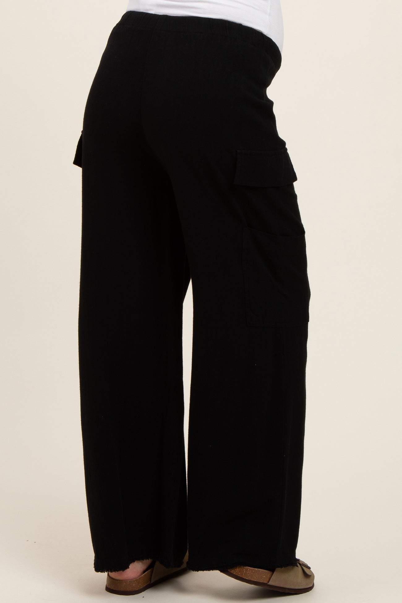 A pair of maternity pants featuring four side pockets and an adjustable drawstring waist.