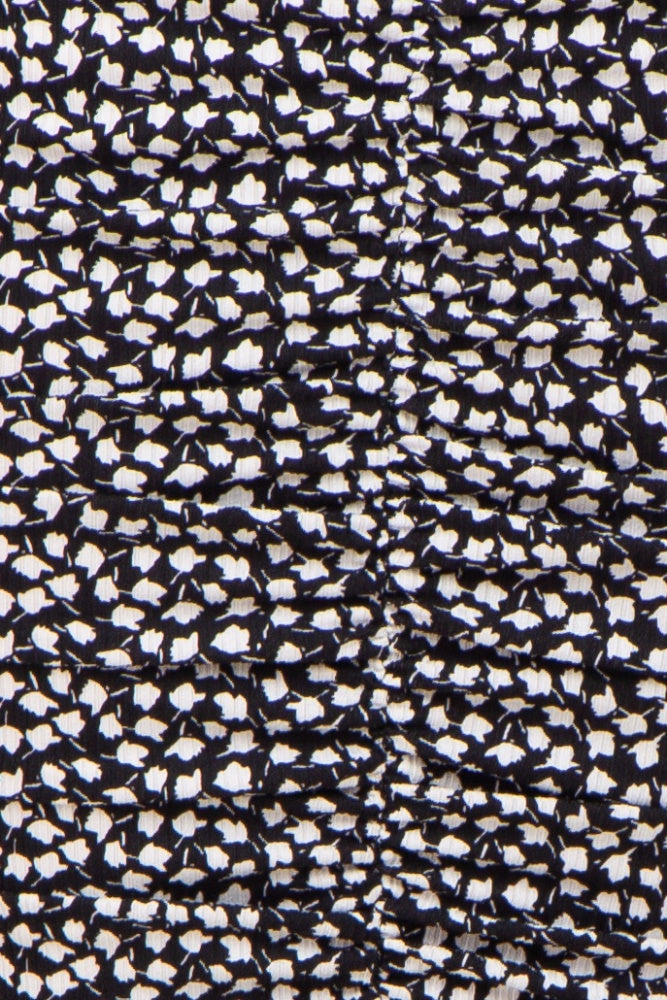 Black Printed Ribbed Shoulder Tie Ruched Dress